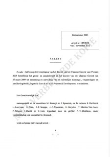Grondwettelijk Hof. Arrest nr. 145/2013, In zake het beroep tot vernietiging van het decreet betreffende het grond- en pandenbeleid en het decreet tot aanpassing en aanvulling van het ruimtelijk plannings-, vergunningen-, en handhavingsbeleid